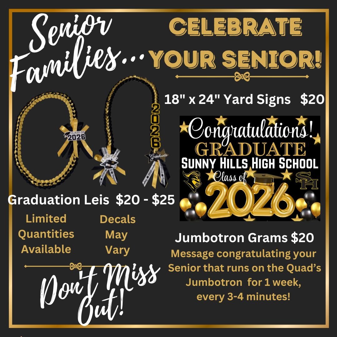 The signs are a way to celebrate your senior's graduation and are intended for display in a lawn. They come with a metal stake to put them in the ground and the signs are 18 inches tall by 24 inches wide. The price is $20 plus a Digital fee.